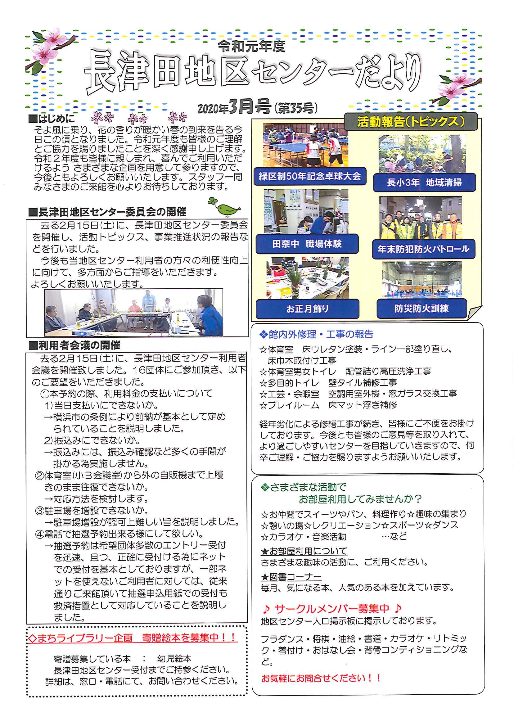 🌸長津田地区センターだより2020年3月号(第35号)を発行致しました