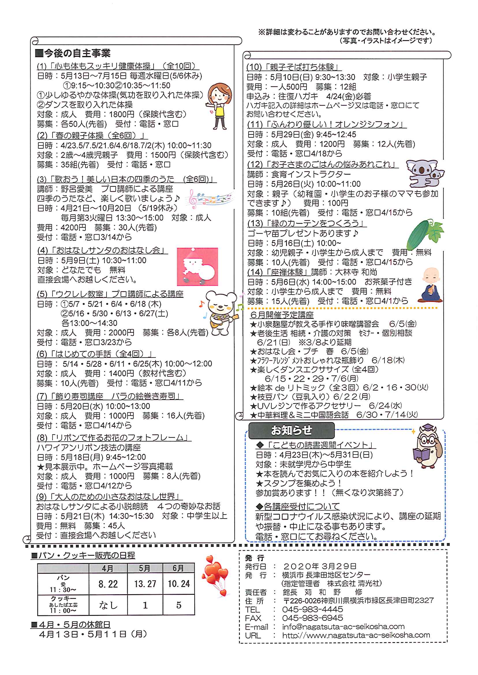 注)自主事業の予定に関しましては、本センターだより発行後、既に中止・延期となっている講座がございます。