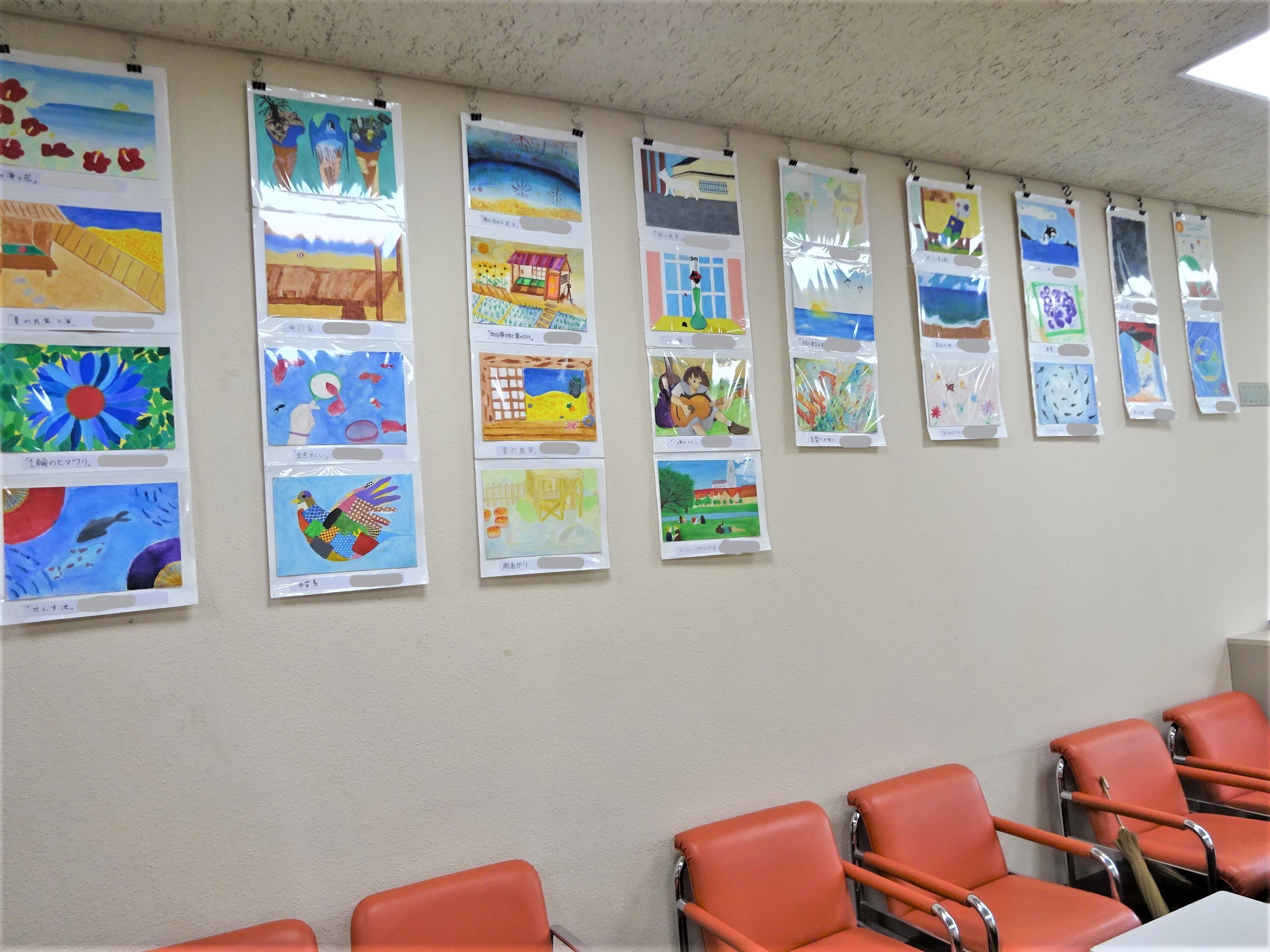 田奈中学校美術部の皆さんの絵画を2Fロビーに展示しております。