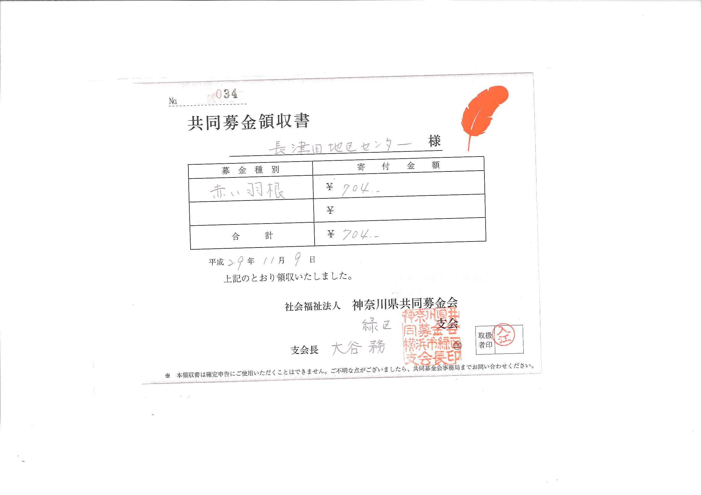 平成29年の年末にご協力いただきました共同募金の領収書が届きました。