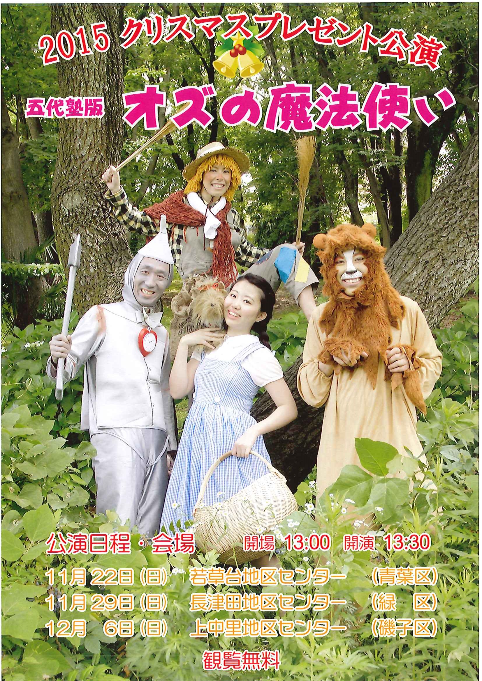 毎年好評のクリスマスプレゼント公演今年は、皆様のご要望にお応えして「オズの魔法使い」を再演します。