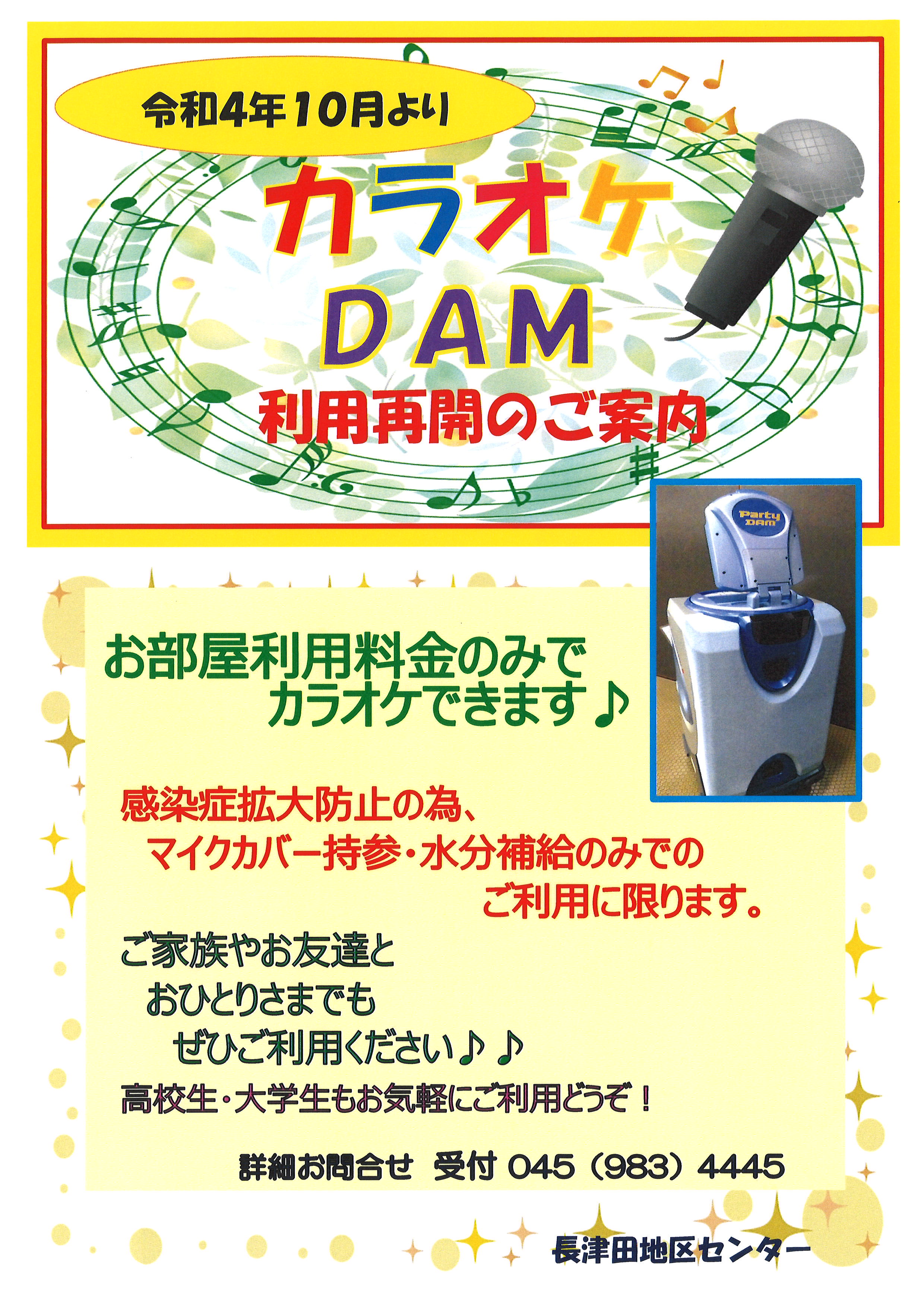 令和4年10月1日より、カラオケDAMの利用を再開致します。