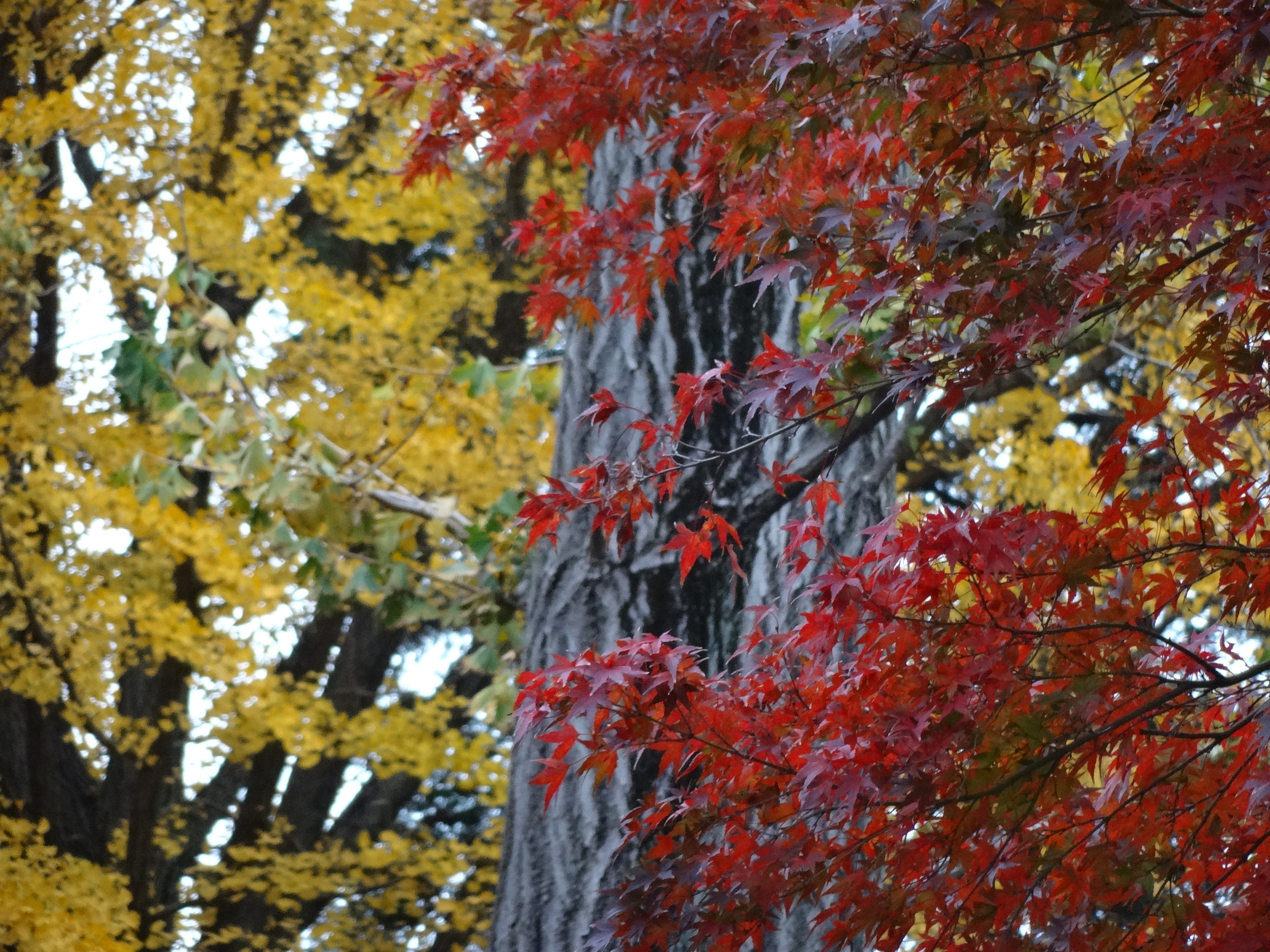 それぞれの広葉樹は個性豊かに色づき頂点を極めています。