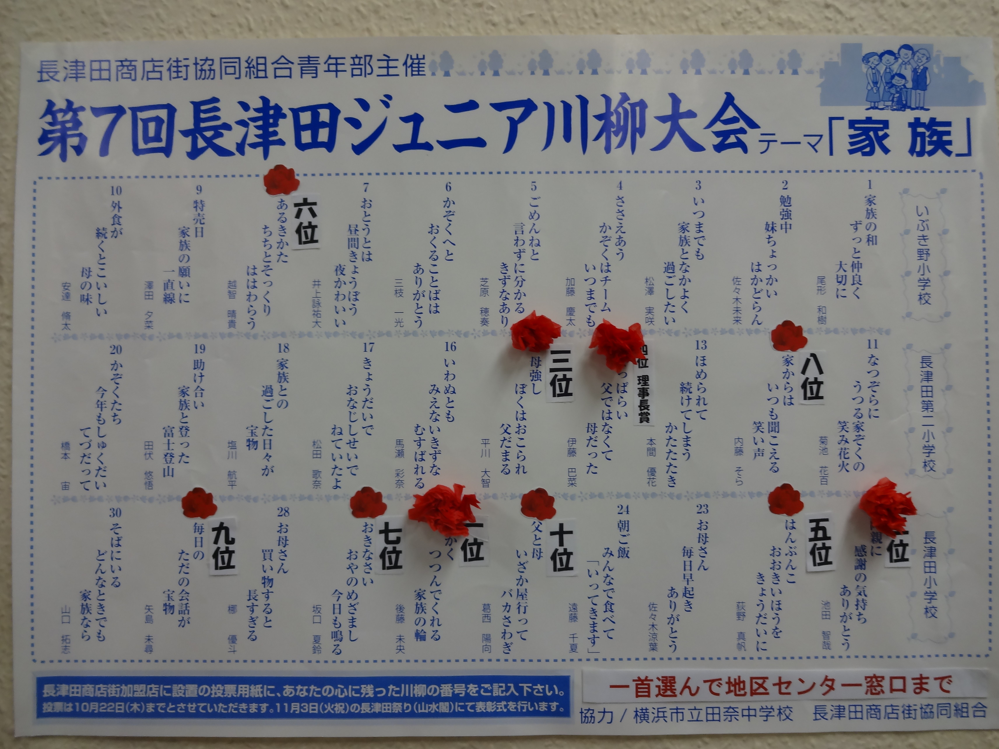 第7回長津田ジュニア川柳大会(長津田商店街協同組合青年部主催)入賞者10人が選ばれ、長津田まつり会場で表彰されました。