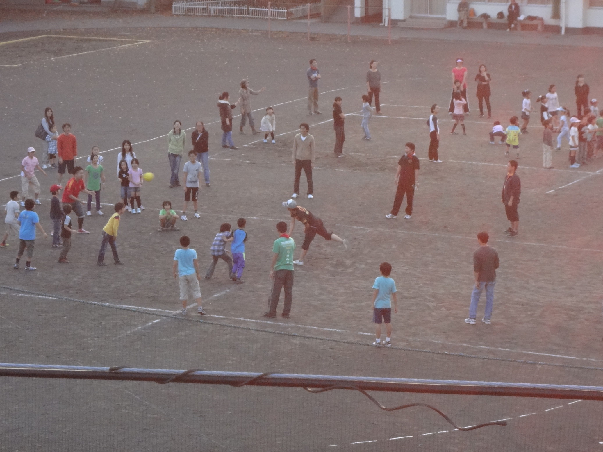 隣の長津田小学校グランドでは、ドッジボールで楽しんでいる人たちが、キャーキャー・ワーワーと歓声をあげていました。
