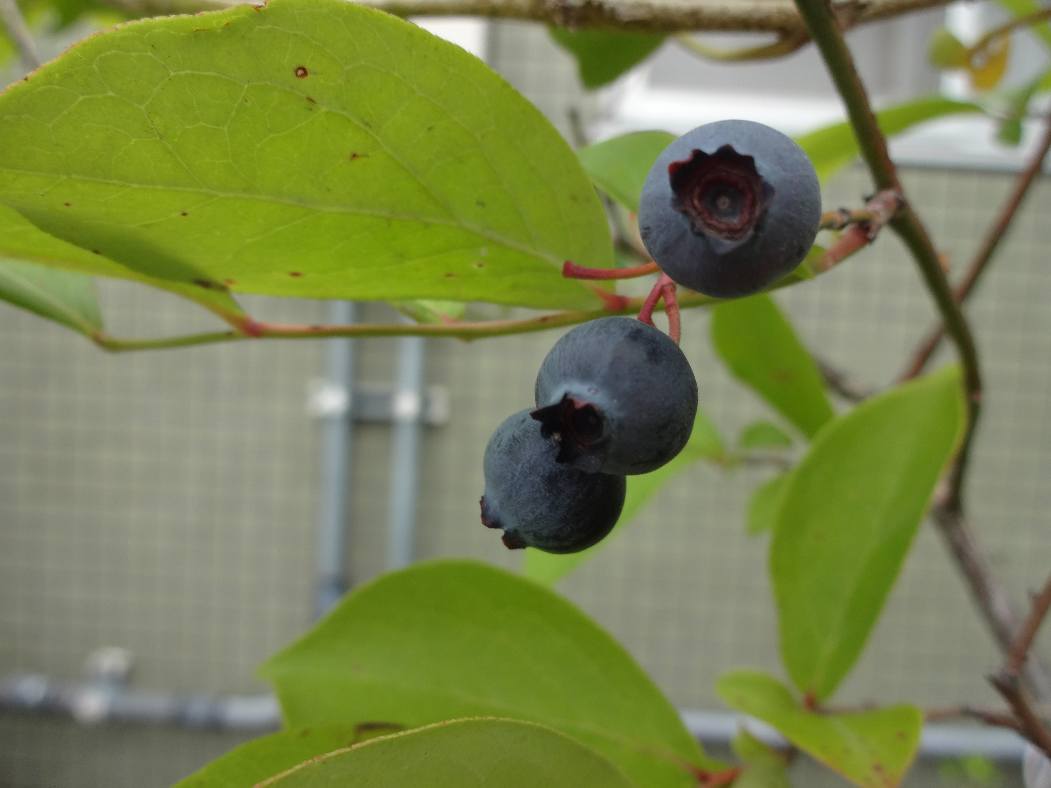 地区センターの自主事業の「植栽講座」で参加者と植えたブルーベリーの実が今年もなりました。
