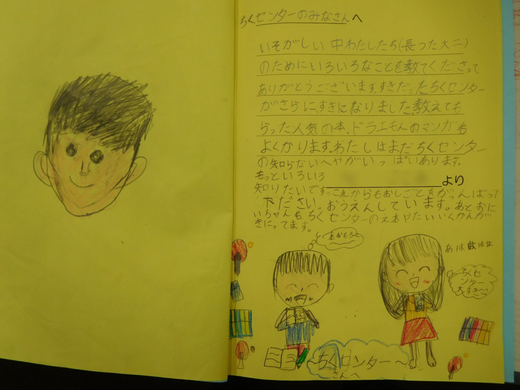 今般、まち探検で長津田地区センターを訪問してくれたこどもたちから礼状をいただきました。
