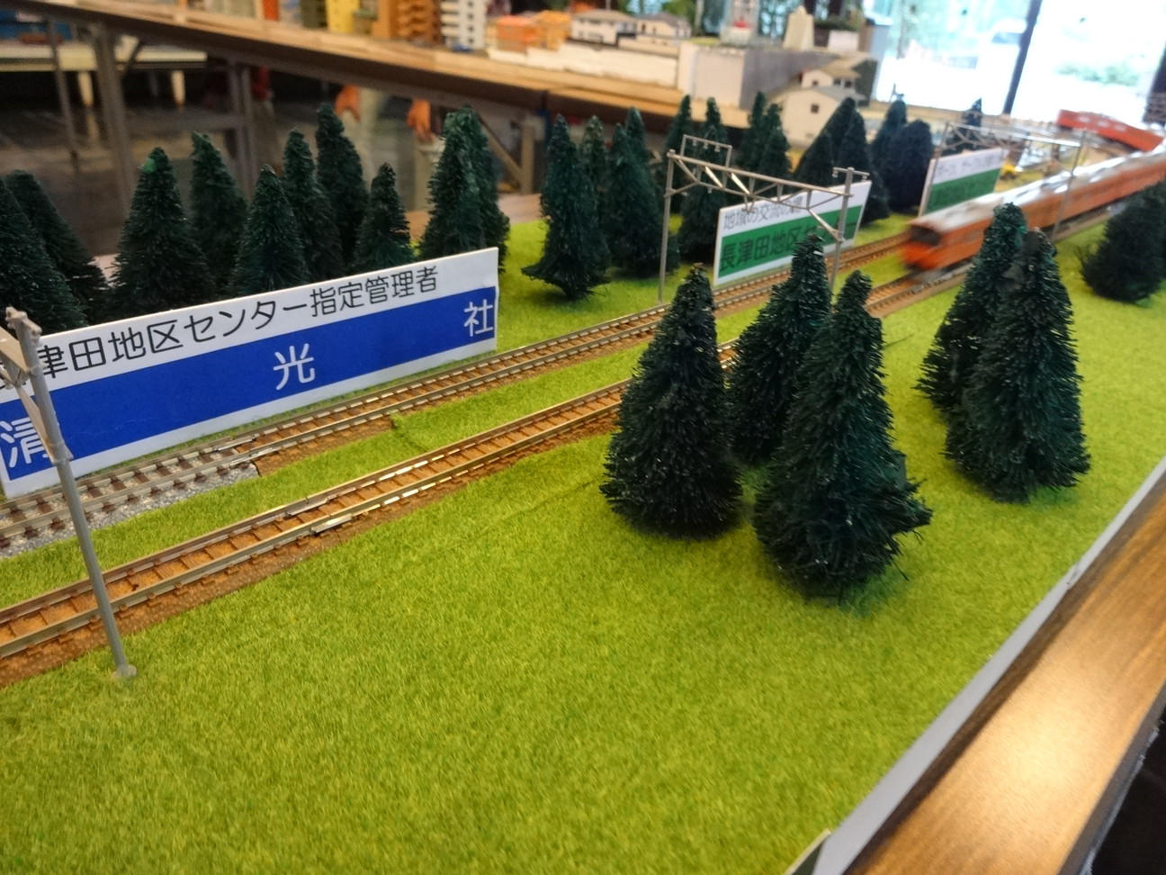 ジオラマの町並みやローカルな木立をいろいろな電車が走り抜けて行く度にどよめきがおこります。