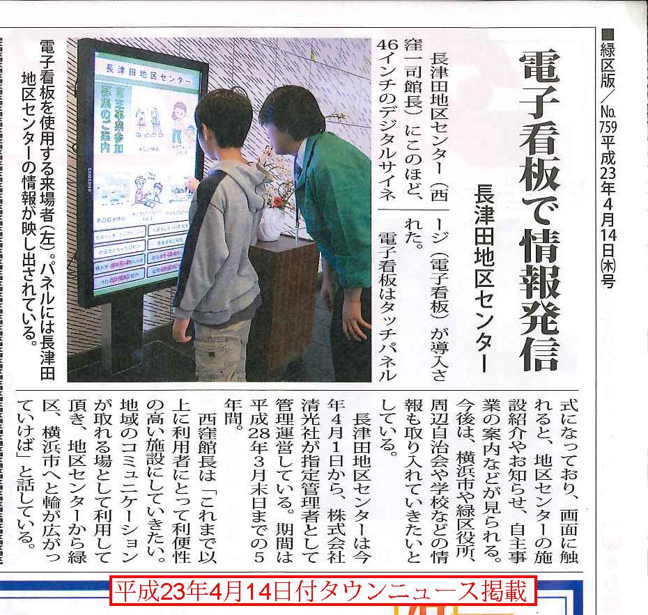 電子広告デジタルサイネージがタウンニュースに掲載されました。