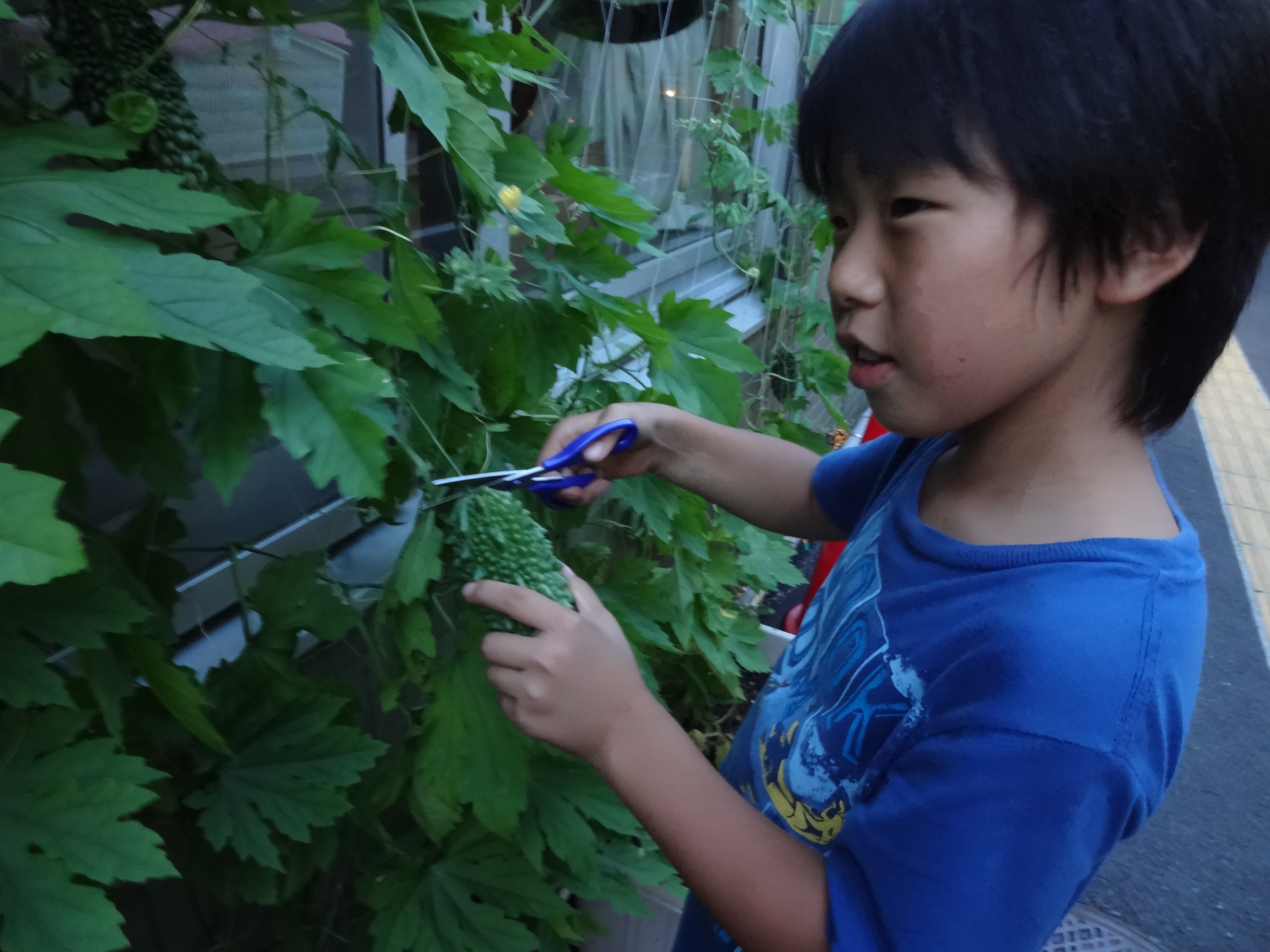 はじめてのゴーヤの収穫をしました。