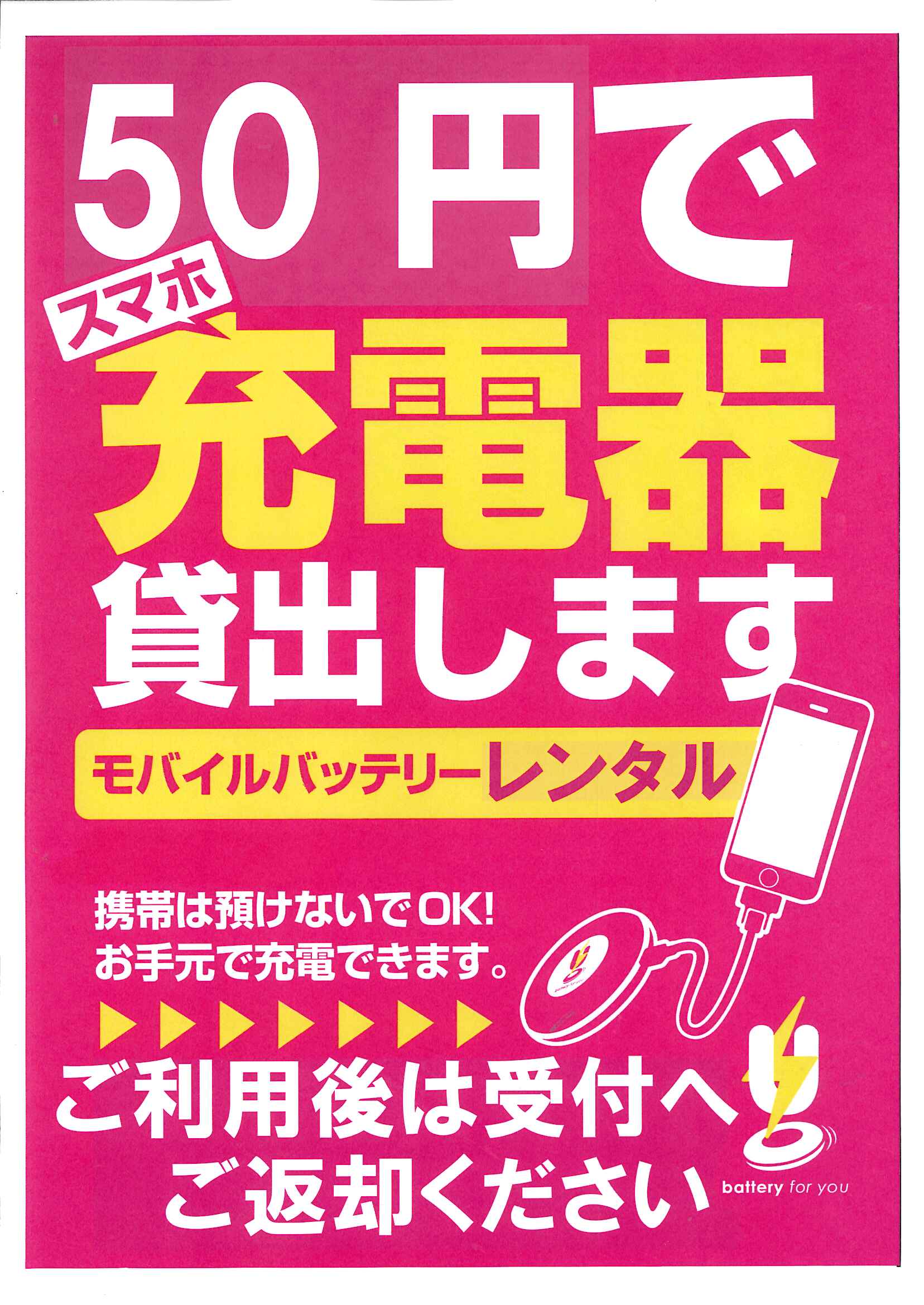50円で充電器を貸出します。