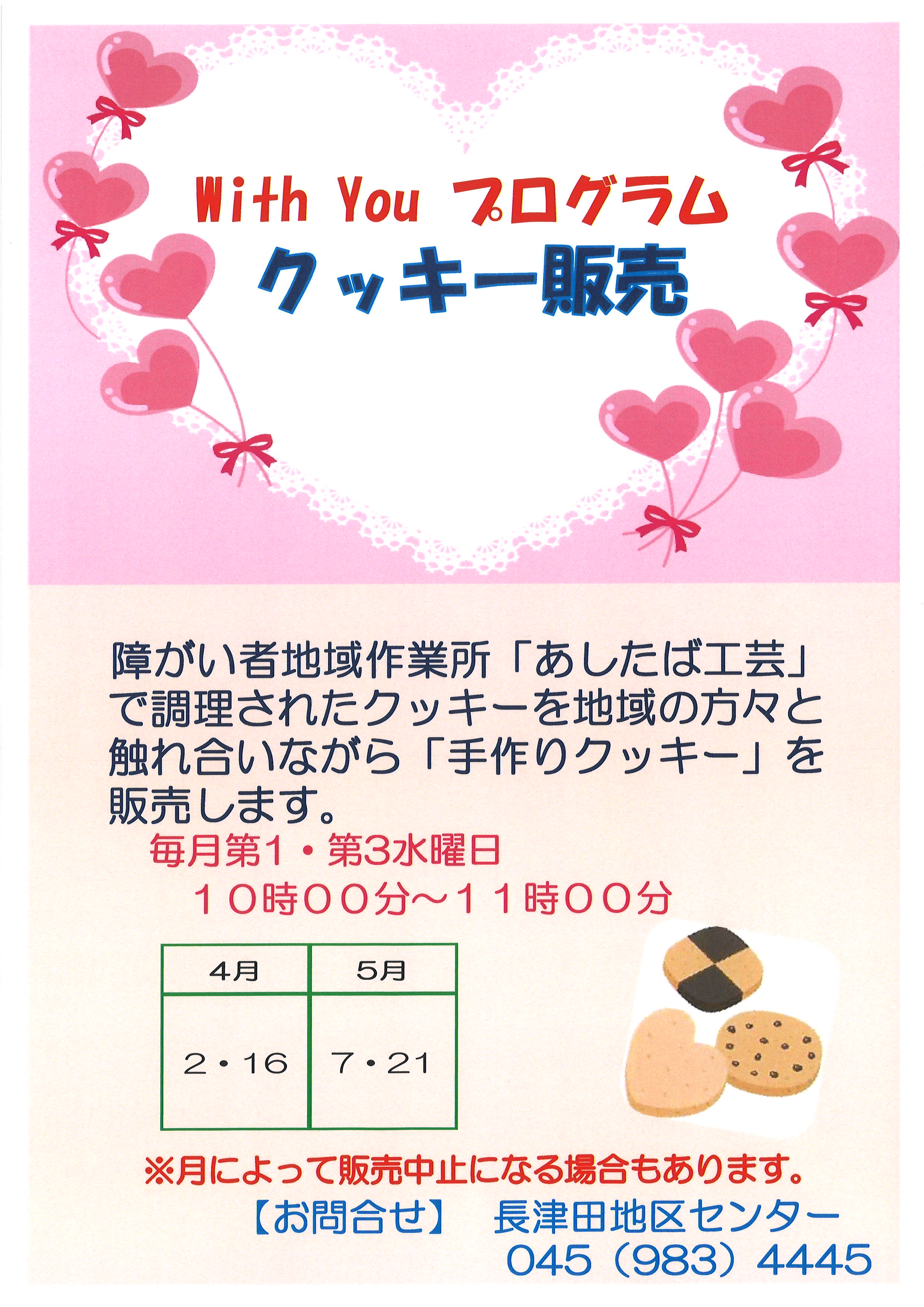 当館では with You プログラムとして、障がい者地域作業所「あしたば工芸」で調理されたクッキーを地域の方々と触れ合いながら「手作りクッキー」を販売しております。