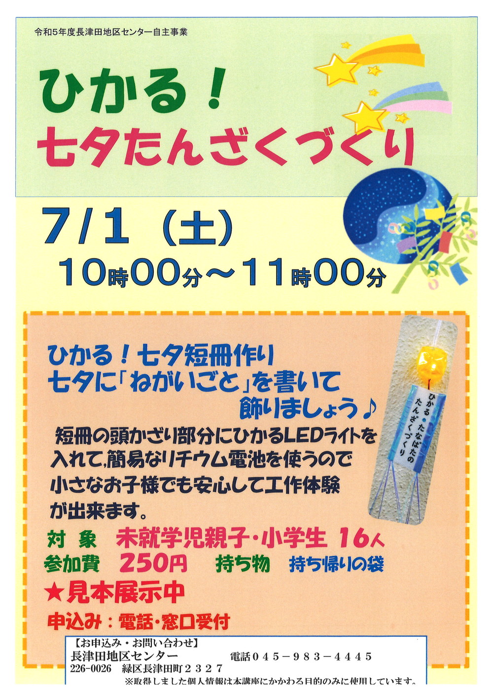【自主事業】ひかる! 七夕たんざくづくり 募集中