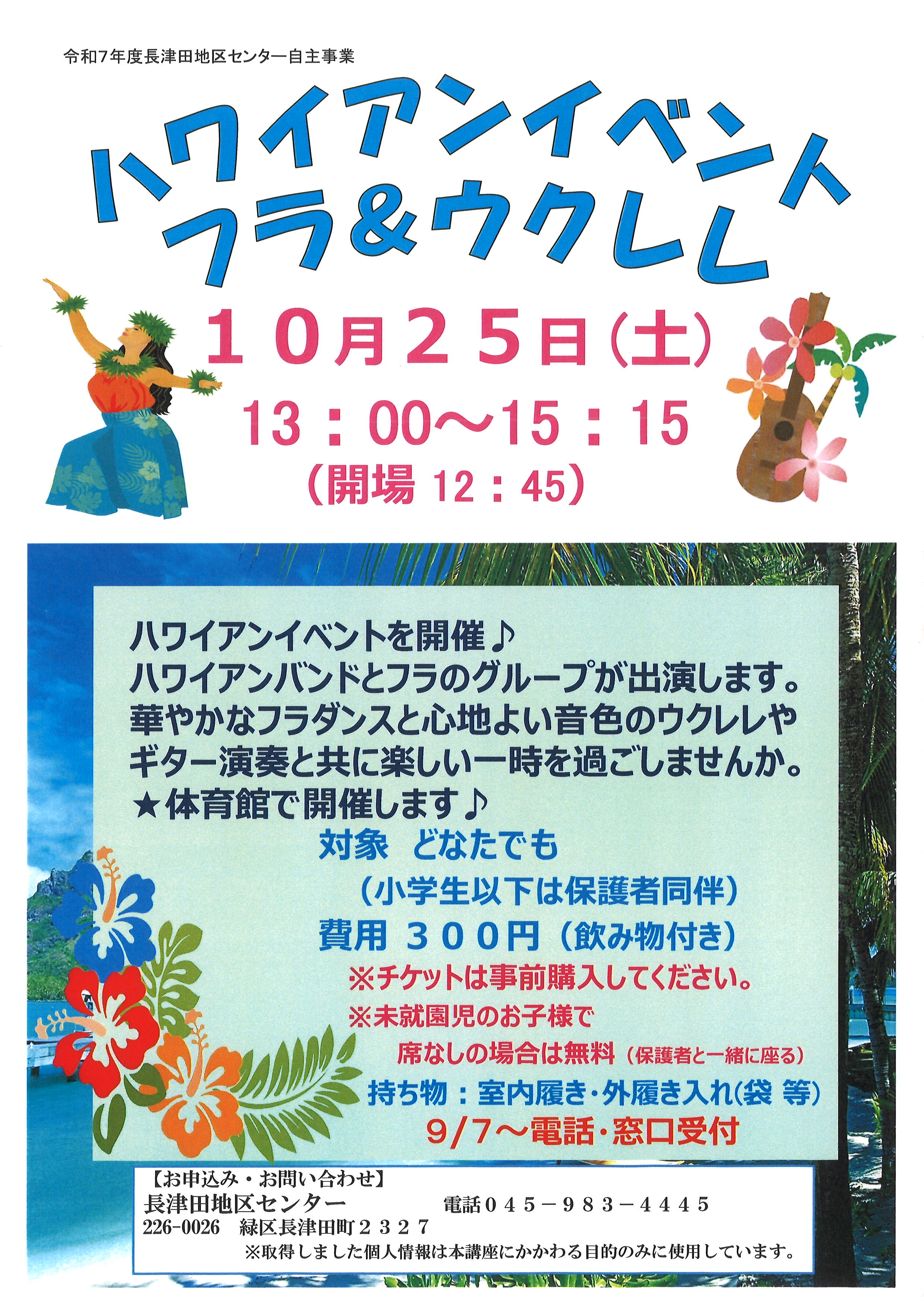 令和7年度も「ハワイアンイベント フラ&ウクレレ」を下記日時で開催致します。