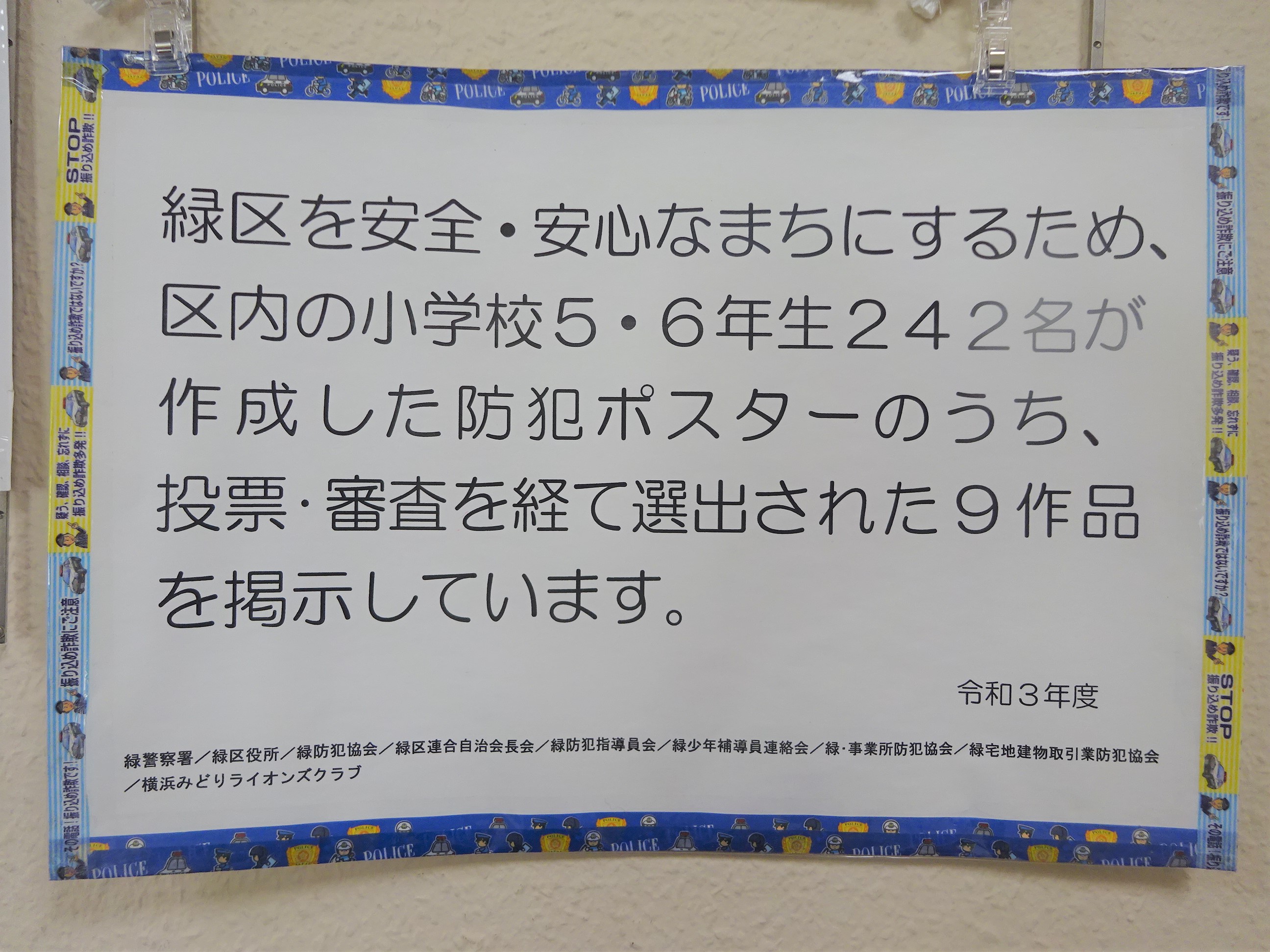 『緑区防犯ポスターコンクール優秀作品』を掲示してます!
