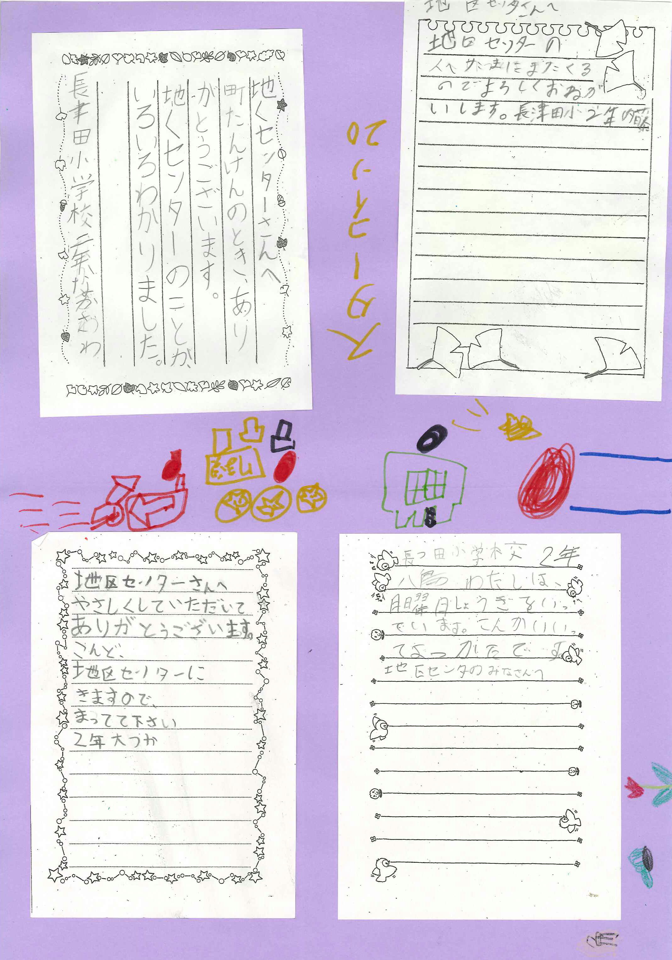 その時のお礼として、一生懸命に作ってくれたかわいいお礼状を、本日先生が届けてくれました。