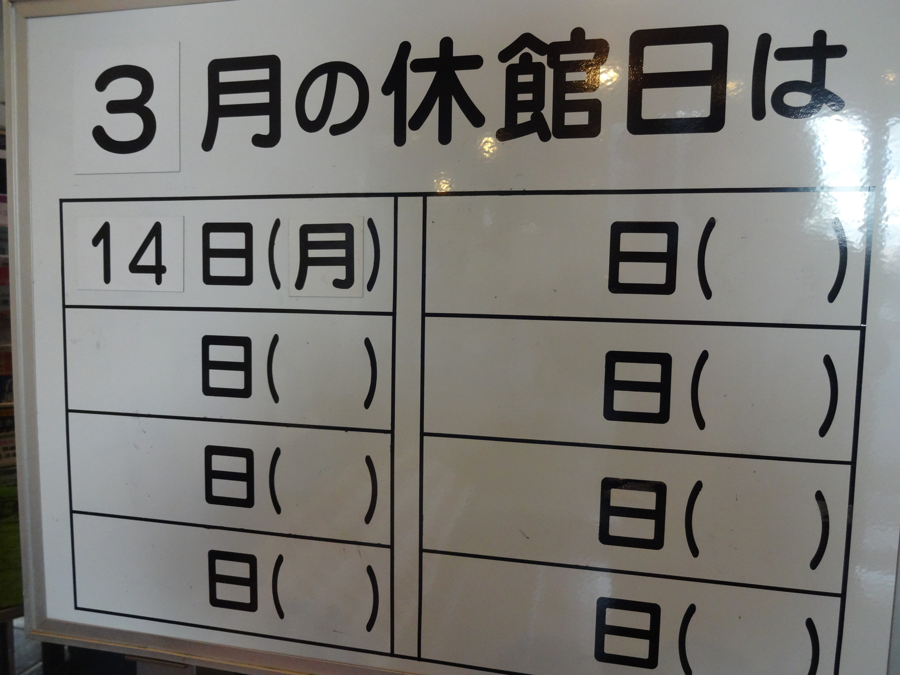 3月の休館日
