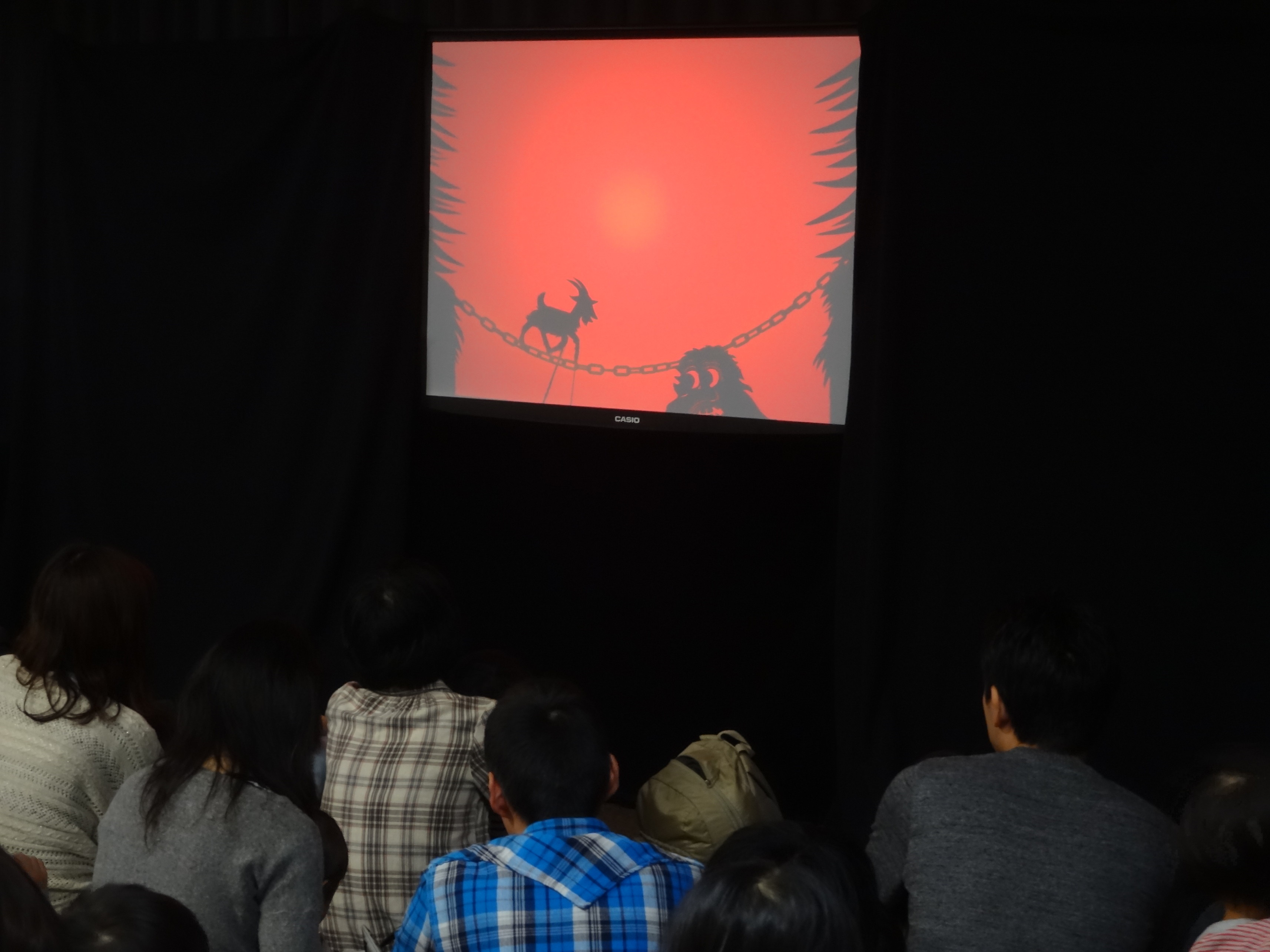 実際に影絵で使用した手作りのヤギやトロルを見せていただきながら説明を聞きました。