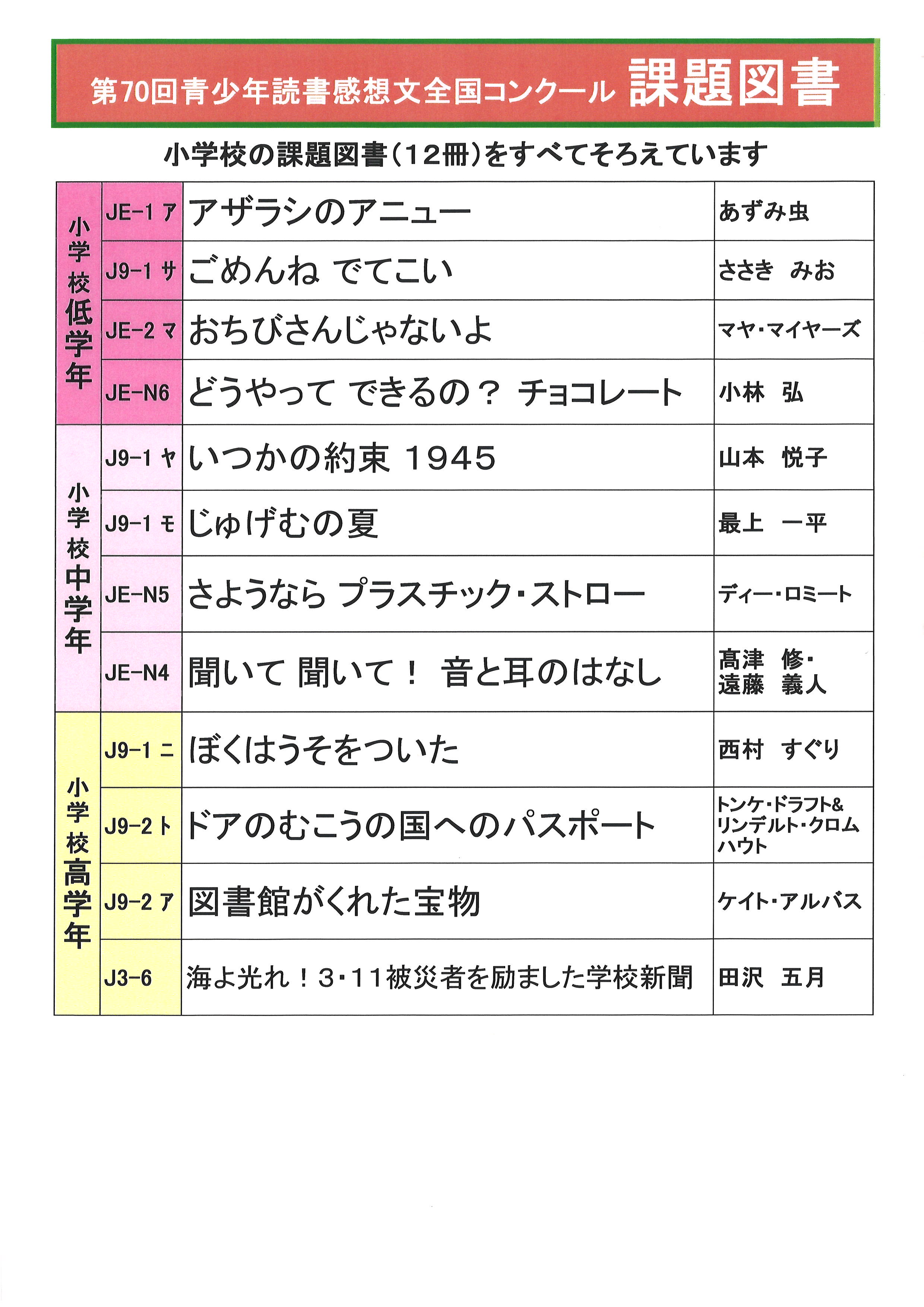 ◆課題図書<第 70 回青少年読書感想文全国コンクール>の準備が出来ました!