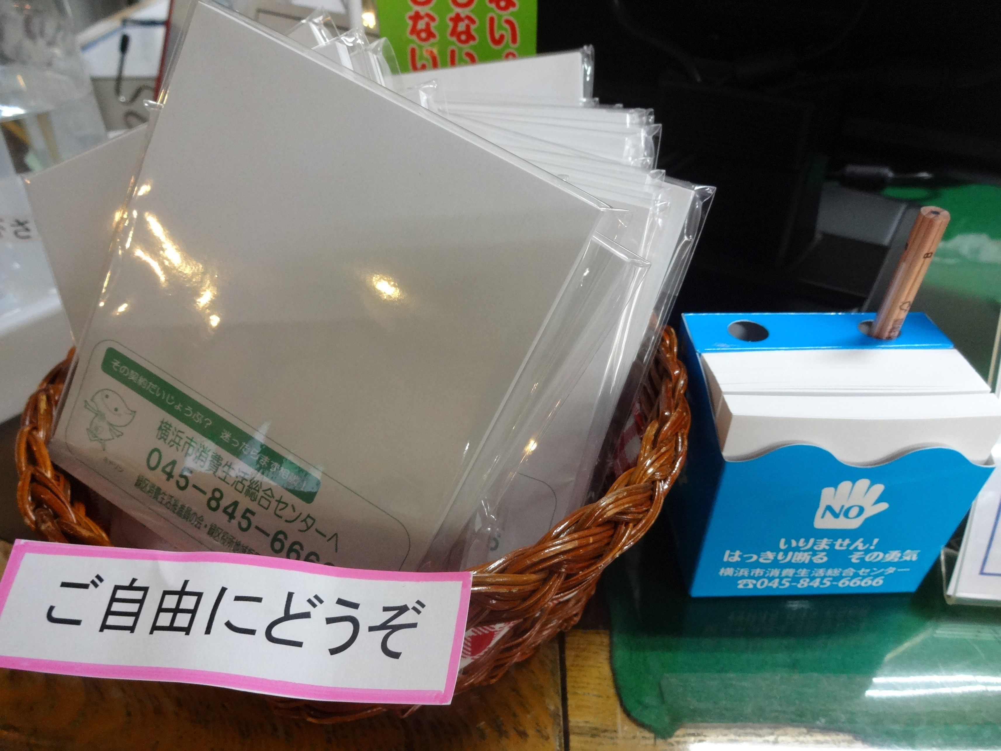 「横浜市消費生活総合センター」の電話番号入りメモ帳を、