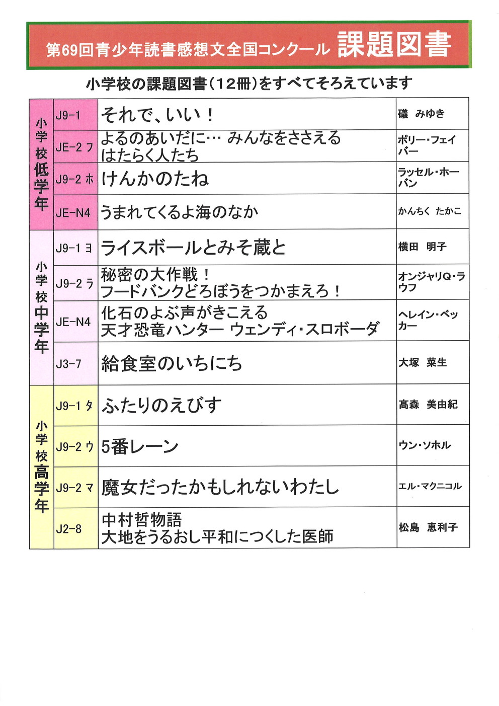 ◆課題図書<第 69 回青少年読書感想文全国コンクール>の準備が出来ました!