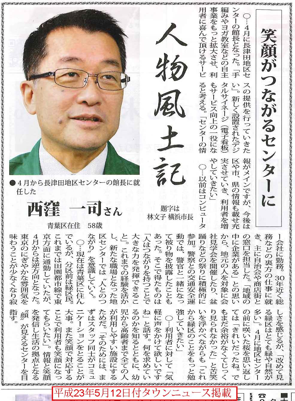 長津田地区センター館長西窪がタウンニュースに取り上げられました。