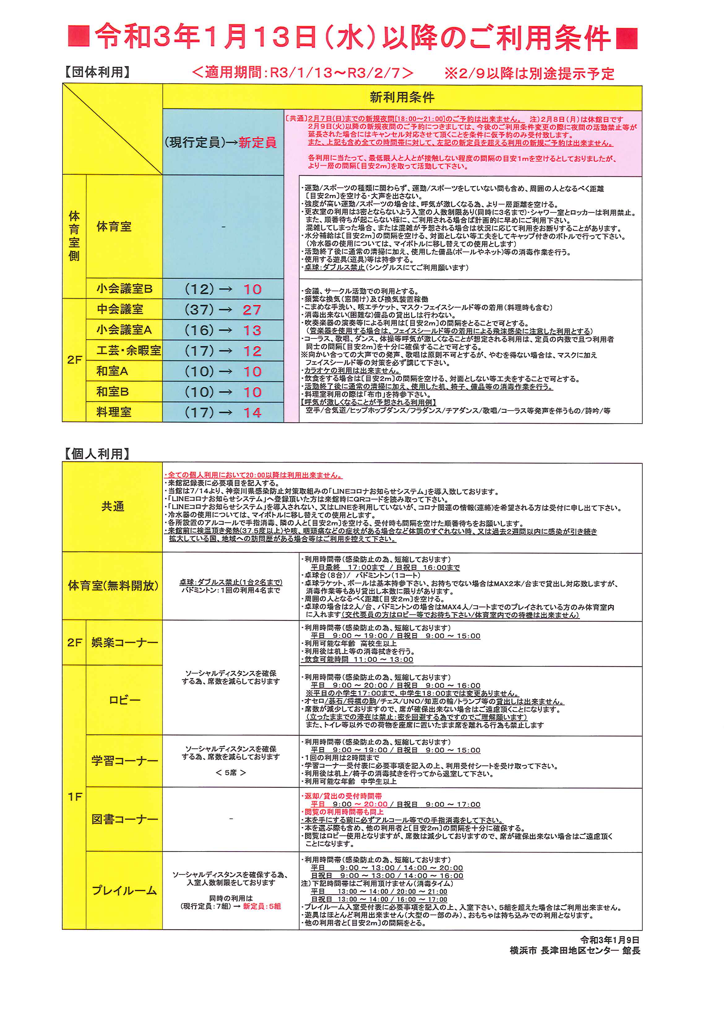 令和3年1月9日 横浜市 長津田地区センター 館長