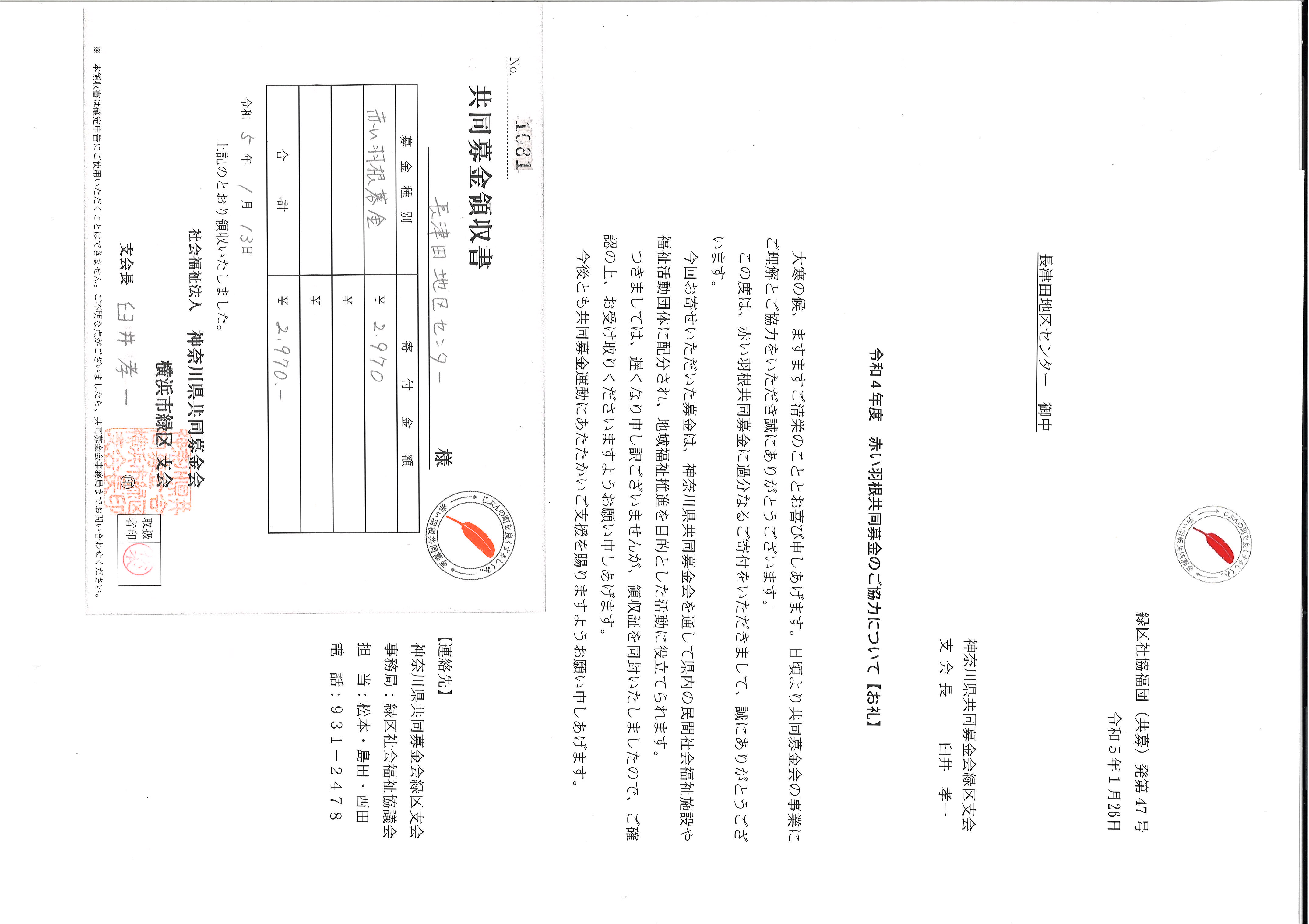 今回ご協力頂いた募金は、神奈川県共同募金会を通して県内の民間社会福祉施設や福祉活動団体に配分され、地域福祉推進を目的に活用されます。