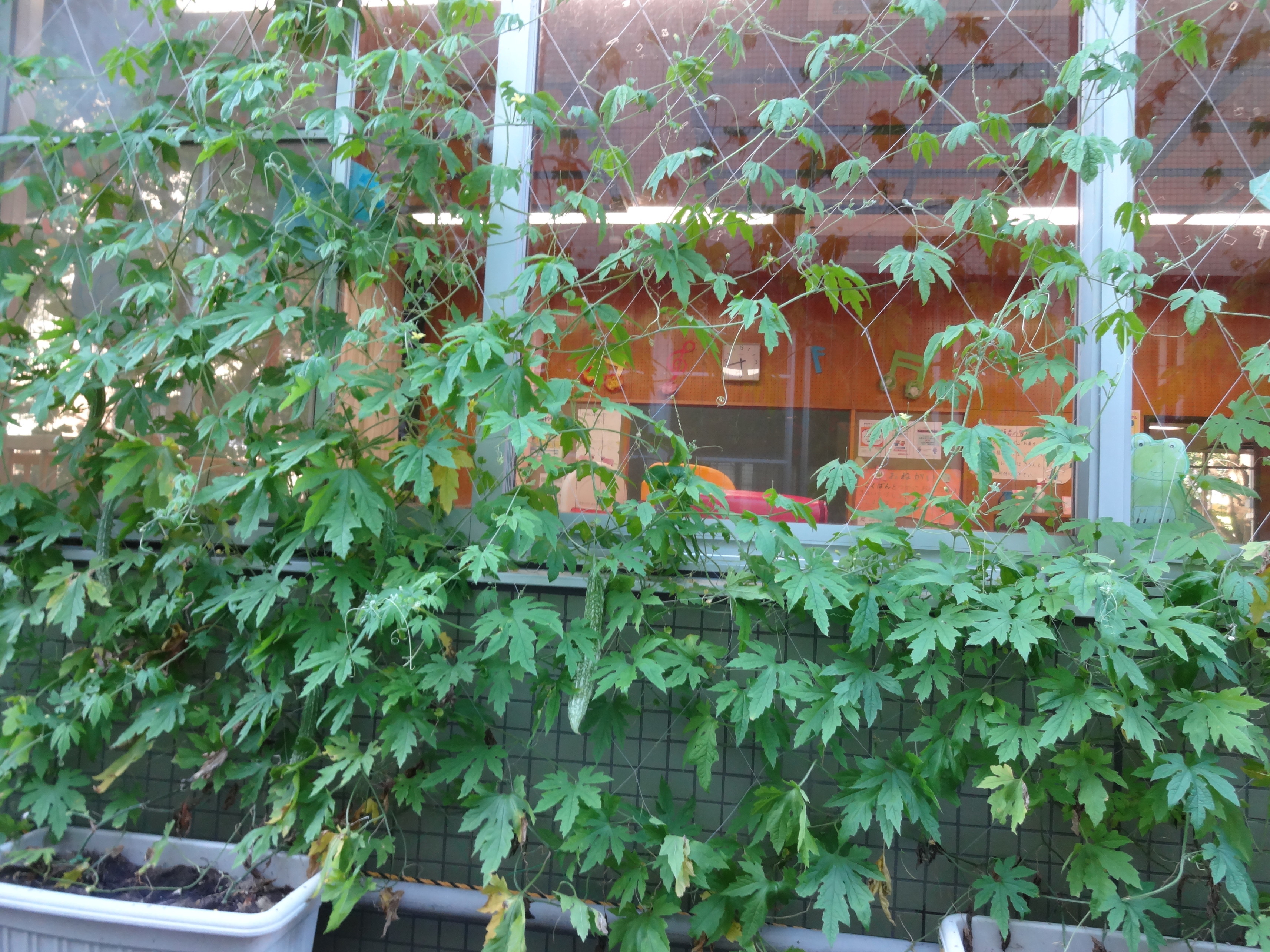 5月に植えたゴーヤも「みどりのカーテン」らしく成長しました。