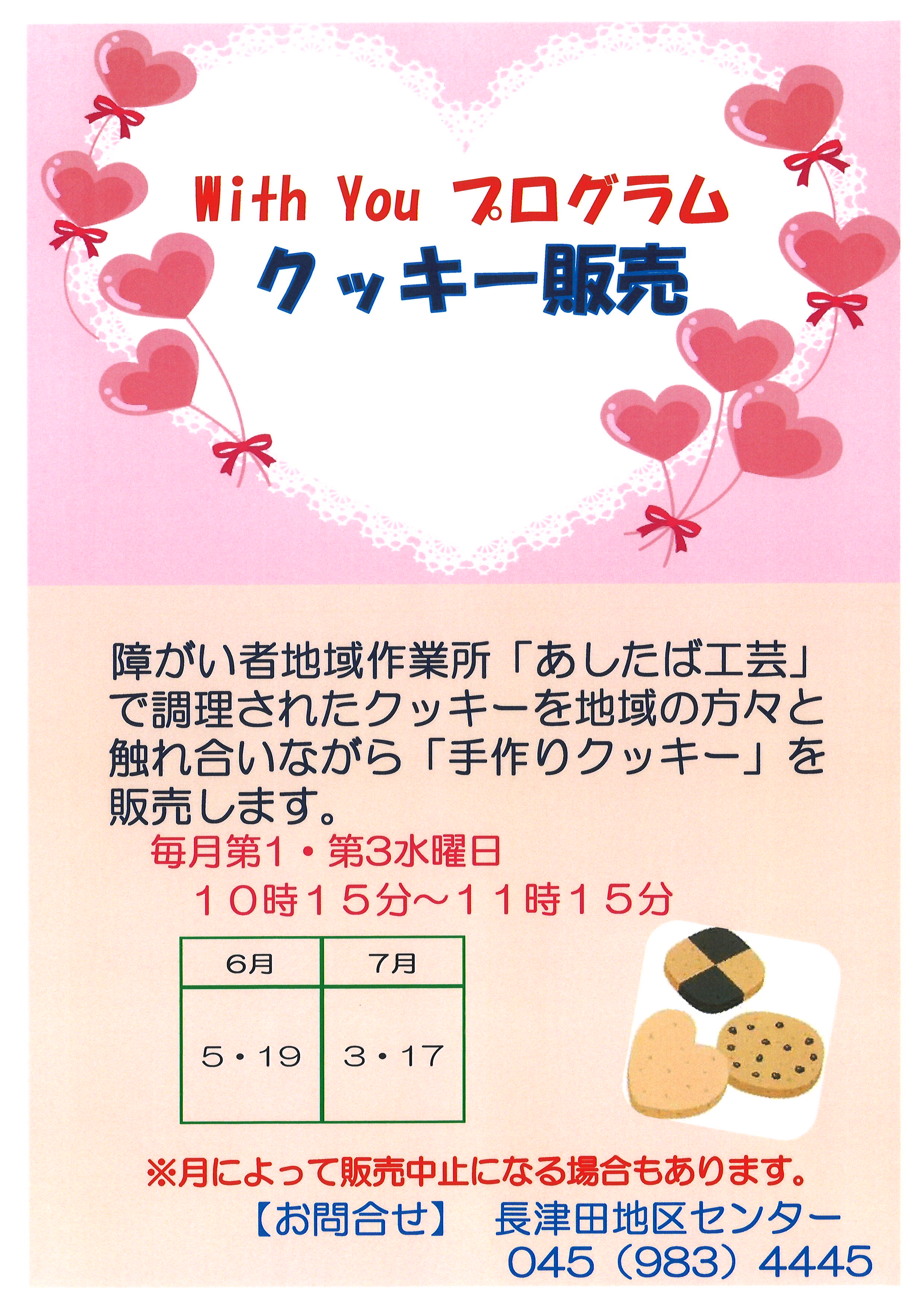 当館では with You プログラムとして、障がい者地域作業所「あしたば工芸」で調理されたクッキーを地域の方々と触れ合いながら「手作りクッキー」を販売しております。