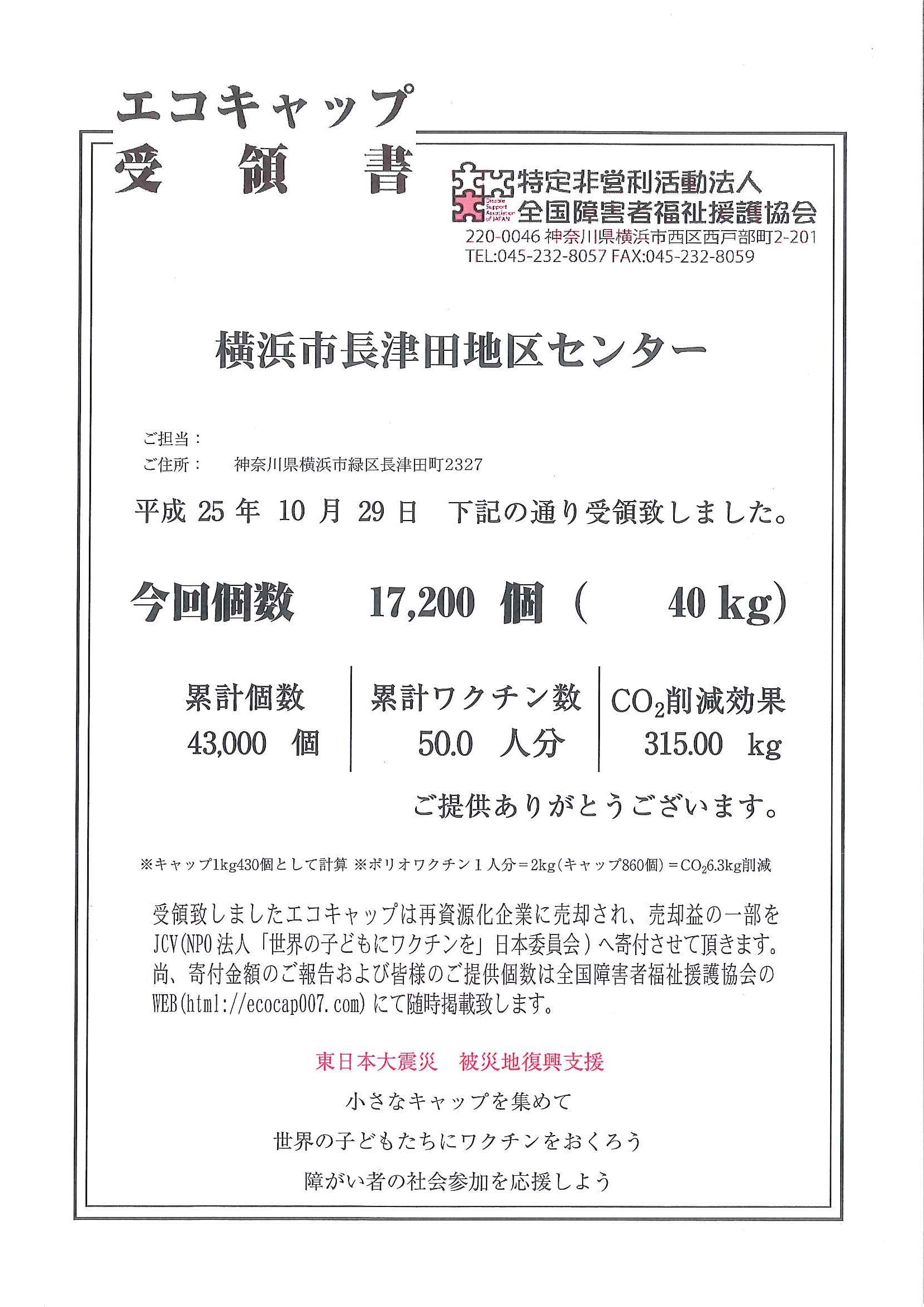 10月エコキャップ回収結果のお知らせ
