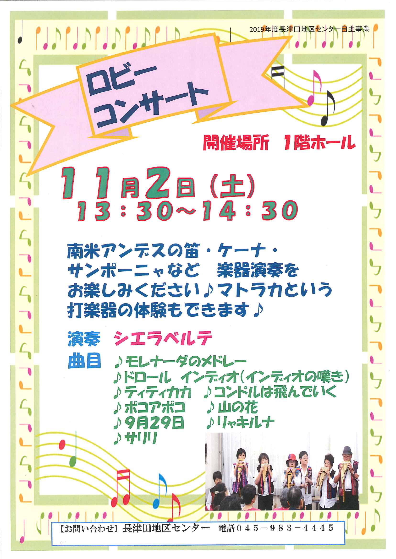 【11/2】ロビーコンサート〔シエラベルテ〕を開催します♬~♪♫