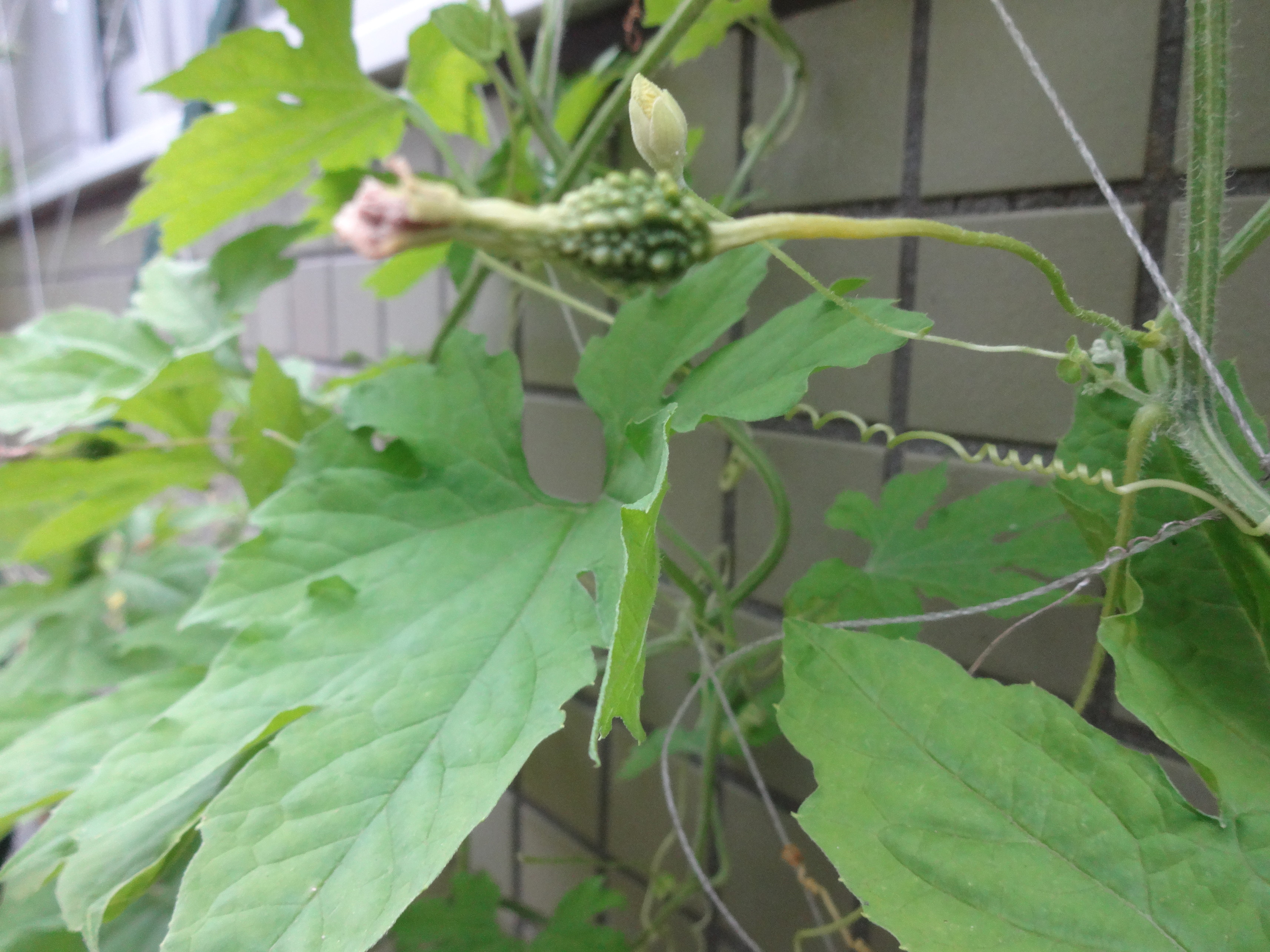 丈はまだまだ伸びていませんが、ゴーヤの実は、