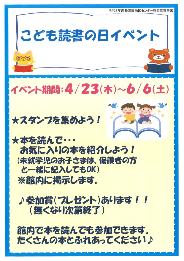 《 4月23日(木)~6月6日(土) 》こども読書の日イベントを開催します。