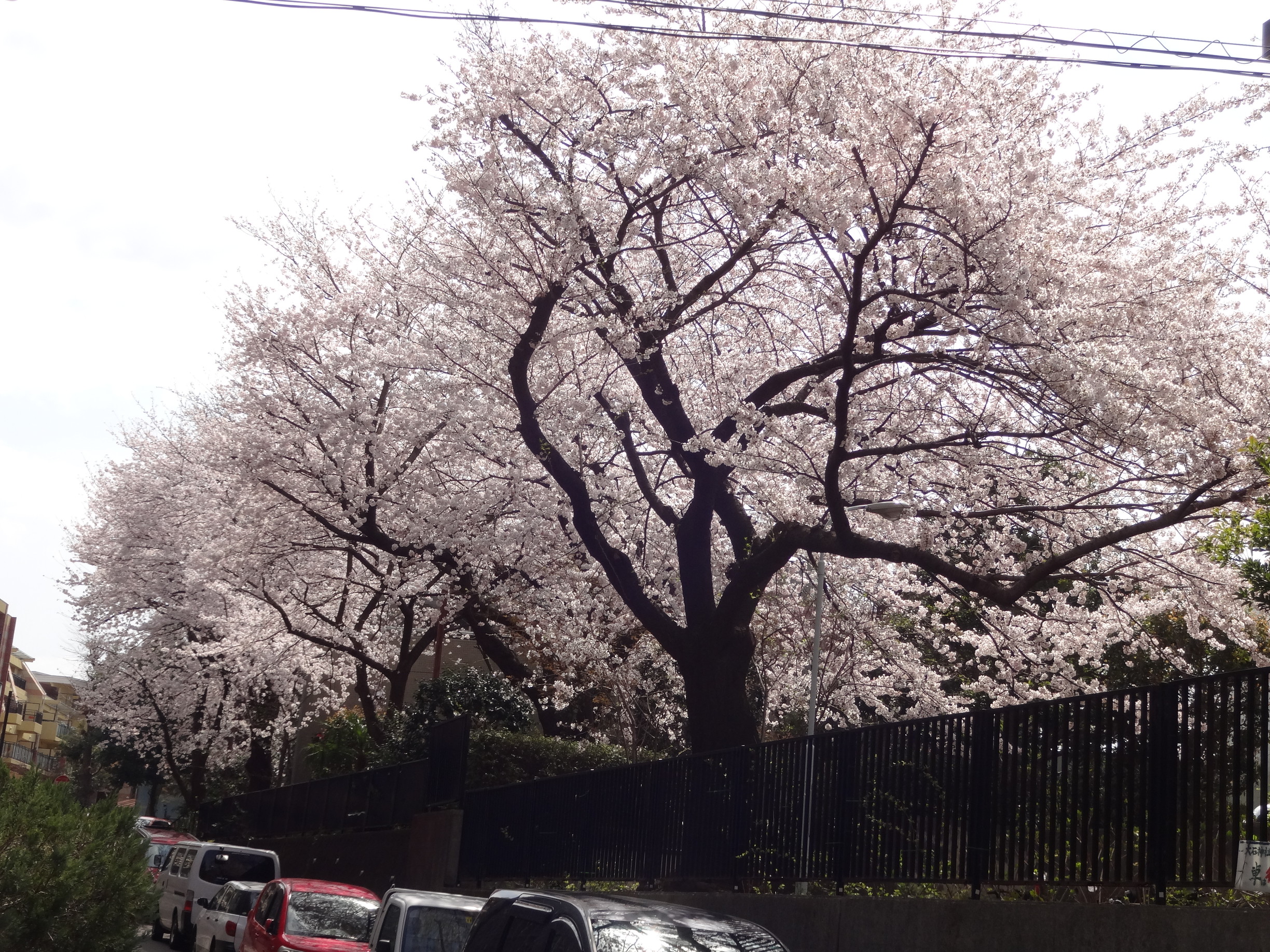 地区センターの外周は樹齢30年を超す桜の大木に囲まれています。