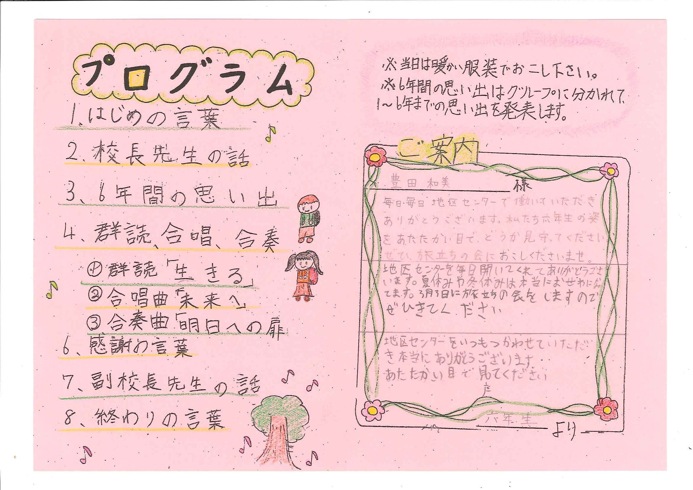 中学校に進学されてからも地区センターで、笑顔を見せてください。